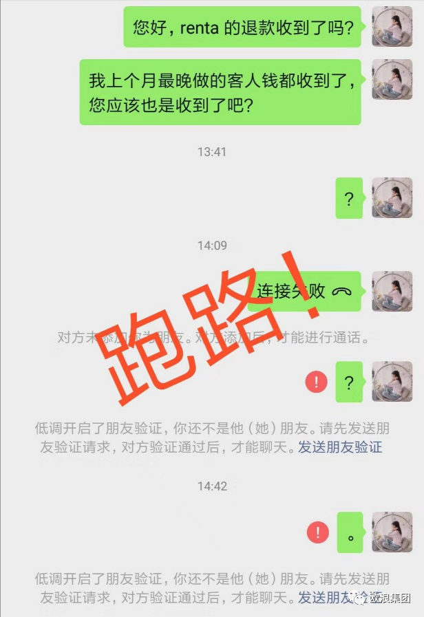 但5月20日,这位男子突然说找到另外一家可以退税更多,说不需要帮他处理了。但是这时候妹子已经帮他完成了申请,并且告知他这样的情况已经计算过了,另外一家是不能再做的。于是这名男子说,稍后会把30欧的服务费给转过去。 到5月25日还没收到30欧的服务费,妹子在微信里问起,开始男子有回答几句,很快就把微信拉黑了。后来再发了一次好友验证,也不给回复。