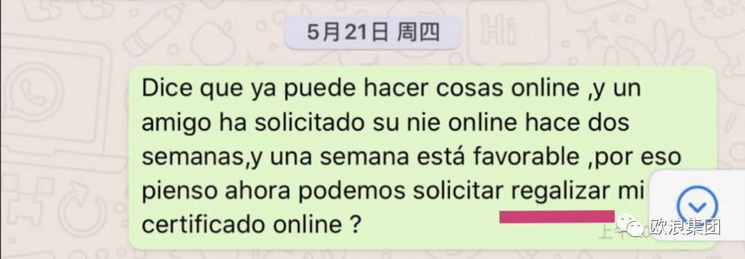 欧浪网(记者/陈诚)"我的居留上诉又被拒绝了,因为没及时提交补充的材料,因为我约好的cita 3月12号那天正好是所有疫情停工的那天,我现在很郁闷。" 6月27日,居住在巴塞罗那的小夏,留学生居留换工作居留已经第二次被拒绝。 第一次帮小夏办居留是一名中国律师,因为申请表少填了工作地方老板的名字导致被拒绝。 第二次找了一位朋友介绍的一名西班牙律师帮忙上诉,开始大家都很客气,也不知道为什么后来这名律师就生气了,把资料给小夏退回来,不帮忙办理了,以至于耽误了补充材料的时间,导致被拒。 知道二次被拒后,小夏昨天打电话给移民局了解情况。移民局的人要求提供当时预约的cita ,认证处关门的时间,还有因疫情关门后有寄送给认证处的信件。移民局的人说为什么律师不通过邮寄方式送到认证处,哪怕关门了也是可以寄的。 这名律师之前说是帮小夏寄了补充材料给移民局,但是因为和小夏在微信里几次沟通之后,就把已经邮寄出去的资料给撤了回来,以至于移民局没有收到小夏的补充资料。 小夏觉得很无奈,出示了自己和律师的聊天内容,记者发现里面有一个单词打错了,本来"legalizar"写成了"regalizar",不知道是不是这句话引起了律师的歧意。