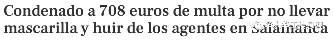 据西班牙媒体9月2日消息,Salamanca2号法院近日判处了一位市民708欧元的罚款,该市民连续两次被警察看到没有戴口罩,并且两次都试图逃走,最终被警方逮捕。