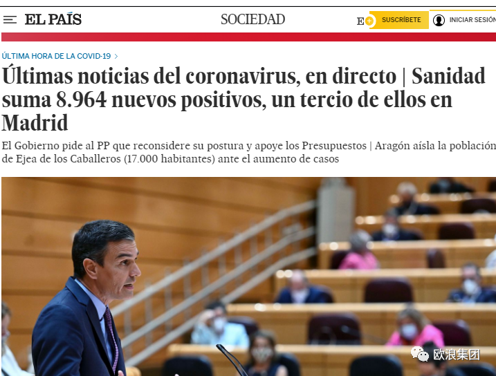 欧浪新闻9月8日(马德里 柳传毅编译) 西班牙卫生部于下午6点半更新了西班牙疫情数据,显示西班牙累计确诊534513例,累计数字比昨天(525549例)增长了近9千例,但属于在过去24小时新测出的病例为3168例,此数字比昨天2440要高7百多。如西班牙最大媒体《国家报》标题所言,西班牙过去一天增长了8964例。 死亡数据上,累计29594例,比昨天增加78例。西班牙过去一周新增死亡261例,马德里占87,其次是安达鲁西亚39,卡斯提亚-莱昂(Castilla y León)20,瓦伦西亚19,加利西亚18和阿拉贡13,是记录死亡最多的自治区。 24小时新增的3168例里,马德里占984,巴斯克370,安达鲁西亚340,纳瓦拉(Navarra)260,阿拉贡208。巴利亚群岛又一天为0新增,这是该群岛多天都是0记录,但不要以为天天清零,而是因为病例样本都推迟了一天才出现检测结果,因此该群岛没有24小时新增记录,但累计数字比昨天多308例。 马德里继续是全国最严重的大区,马德里至昨天为累计146341例,今日为149262例,所以马德里过去一天实际增长了2931例(其中984例为24小时新测出)。