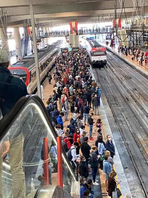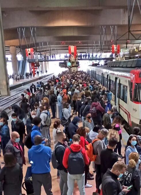 西班牙20分钟报消息,为应对新冠病毒的大暴发,马德里大区批准了新的隔离限制措施。然后就在同一天,成千上万的马德里人在他们的社交网络上的抨击了星期五下午马德里Atocha车站人山人海的现象。 在网络上流出的社交网络的视频和图片中可以看到,马德里Atocha车站的站台上挤满了人,车厢内部也是同样的景象。马德里居民认为每天使用Cercanías出行的人数众多,新措施无法维持安全距离。 “一个聚会仅限于6人,让我们营业场所减少开放时间……当然,问题只在那些地方。”一位Twitter用户讽刺到。 另一个Twitter用户向运输、交通和城市议程部大臣José Luis Ábalos发出质问:“您打算做点什么?还是只是像在Chamartín一样更改车站的名称?” 另一位用户抱怨说:“经过一天的工作,没有比洗一个人群浴更好的了...” 这些用户重复使用了形容词“丢人”,来形容政府的出行管理和对Cercanías采取的措施。 一位互联网用户写道:“管理非常好,是吗?哦,当然也是伊莎贝尔·迪亚兹·阿尤索的错。丢人!”