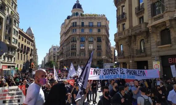 根据加泰罗尼亚自治区卫生部最新数据,今日新增确诊感染2853人,死亡15人和39人住院。加泰罗尼亚高级法院(TSJC)裁定,正式批准加为制止新冠病毒感染所采取的新措施。 在政府下令关闭该地区所有酒吧餐馆的第一天,餐饮业主们纷纷涌上街头,引发了一场大规模抗议活动。大家敲打着锅碗瓢盆,扛着标语,喊着口号:“不准关门”,“政府辞职”,“我们不想要施舍,我们想要工作”,“餐饮业很安全”,“政府提供的4000万欧元无法弥补关闭15天所造成的损失”。 来到 Sant Jaume广场的抗议者还向加泰罗尼亚和巴塞罗那市议会的外墙投掷鸡蛋。示威游行活动造成Via Laietana与Urquinaona广场的交汇处被切断。