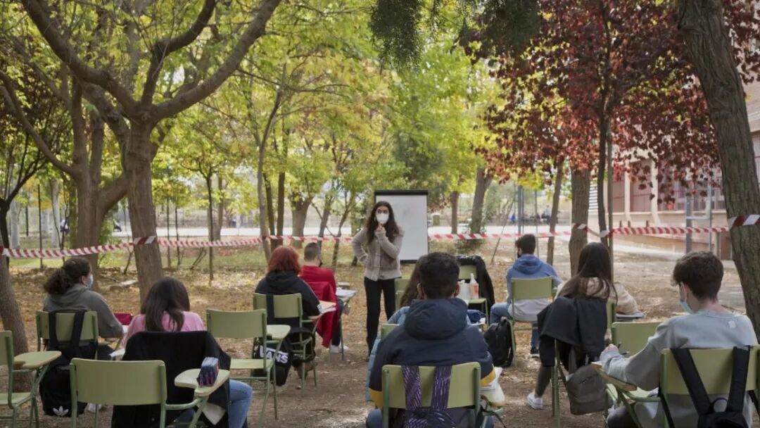 面对疫情持续恶化,学校确诊感染人数增加。老外并没有关闭学校的想法,而是想出了更多方法,在尽可能降低感染风险的情况下,确保学校继续上课。 IES Cabañas是La Almunia de Doña Godina的中学之一,开放了其第一个户外教学空间:Aula Epicuro。九名初三学生参加了这节课,由该学校的研究负责人Marta Domínguez教授了西班牙语言和文学。 这个想法来自哲学系主任兼教授Jorge Jiménez,他表示:“这是对希腊哲学家Epicurus的致敬。Emcurus当时就在户外进行授课,授课场所被称为“花园”。正如他所描述的一样,学校的这个地方也经过了改造,有近二十把椅子和固定的桌子,有一块便携式黑板,并且用胶带划了界。他认为这种做法是有益的。 负责人强调,我们接受了专家的建议,尽可能多地在户外活动。所以,这样做可能是最好的选择。现在是冬天,虽然外面开始冷起来了,但是大家穿上大衣就可以继续上课。 来源:华人资讯传媒 |