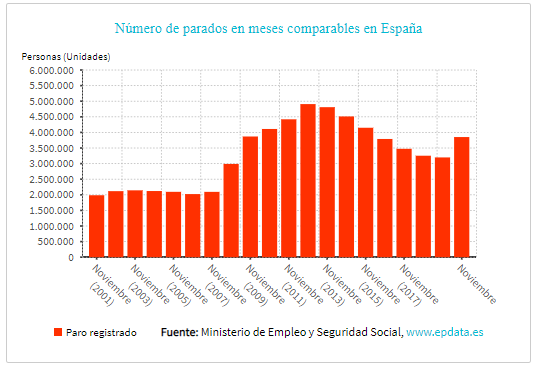 西班牙20分钟报消息,西班牙劳动力市场数据仍然糟糕。 根据劳动部本周三发布的数据显示,11月西班牙失业人数增加了25269人(增长0.6%),是自2012年以来的本月最高水平,也是继十月份以来的连续第二次上涨。 另一方面,支付社保的人增加了31638人,是自2006年以来的这个月最大的增长。不过社保总支付人数比疫情之前减少了228227人,总失业人数增加了605265人。 于此同时受ERTE影响的员工增加到746900人,与十月份的599350人相比增加了18487人,自9月底以来增加了40650人。 随着失业率的上升,到11月底,西班牙失业总人数达到381万人,比去年同期增加了653128人(增长20.4%) 。 十月,欧元区的失业率降至8.4%。然而希腊和西班牙的失业率却比欧元区数据翻了一番,分别为16.8%和16.2%。 此外欧盟的青年失业率是17.5%,欧元区的青年失业率是18%,但西班牙青年失业率却高达40.4%,是整个欧盟中最高水平。 来源:板鸭之声 |