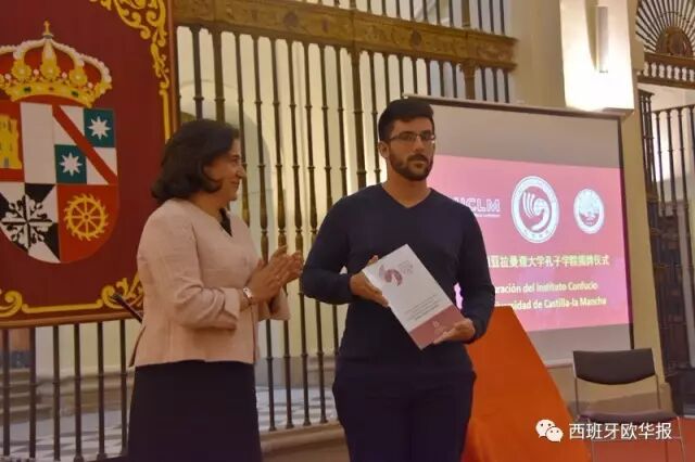 ![]() 欧华报消息(记者 木槿)4月25日下午16时,卡斯蒂利亚拉曼查大学(UCLM)孔子学院揭牌仪式在卡斯蒂利亚拉曼查大学San Pedro Martir-Madre de Dios校区Paraninfo教堂隆重举行,中国驻西大使吕凡先生、文化参赞刘雯秋女士、UCLM大学校长Miguel Angel Collado Yurrita先生,UCLM大学国际交流合作副校长Fatima Guadamillas Gomez女士、托莱多市旅游及手工业局局长Rosa Ana Prdriquez Perez女士、南昌大学副校长辛洪波先生、卡斯蒂利亚拉曼查大区教育文化和体育局局长Angel Felpeto Enriquez先生,以及西班牙各地区孔院领导、南昌大学师生等应邀出席了揭牌仪式。 揭牌仪式由UCLM大学孔子学院院长Maria Angela Celis Sanchez女士和徐彩霞女士主持。 揭牌仪式在西班牙长青俱乐部带来的舞龙舞狮表演中拉开帷幕。 Maria Angela Celis Sanchez女士 UCLM大学孔子学院院长Maria Angela Celis Sanchez女士首先致欢迎词,她对到场的来宾表示由衷的感谢与诚挚的欢迎。Maria院长表示,今天是一个大喜的日子,卡斯蒂利亚拉曼查大学孔子学院经过一段时间的筹备,终于在中国金鸡报晓的年份里揭牌了! Maria院长表示,UCLM大学孔子学院将在中西友好合作的道路上,怀着谦恭的态度,向富有经验的西班牙各地孔子学院、向合作伙伴南昌大学学习,努力做到更好。同时,UCLM大学孔子学院将通过汉语课程教学和中国文化传播等活动,为卡斯蒂利亚拉曼查大区的人们展示历史悠久、灿烂辉煌的中国文化。最后,Maria院长特别感谢南昌大学、UCLM大学孔子学院团队,以及在筹备孔院成立过程中给予过帮助的所有人,并希望UCLM大学孔子学院越办越好。 马德里孔院院长Isabel Cervera女士与中方院长倪茂华女士、瓦伦西亚孔院院长Vicente Andreu与中方院长张代生先生、巴塞罗那孔院院长常世儒先生、格拉纳达大学孔院院长吕文娜女士、拉斯巴尔马斯孔院院长任显忠先生、萨拉戈萨大学孔院院长Rafael de Miguel先生均对UCLM大学孔子学院的成立表示衷心的祝贺。 UCLM大学孔子学院成立之后,将在卡斯蒂利亚拉曼查大区各省同时开展工作,在座嘉宾共同观赏了一段视频,对UCLM大学孔子学院有了进一步的了解。 为卡斯蒂利亚拉曼查大学孔子学院徽标设计竞赛获胜者 揭牌仪式上,UCLM大学国际交流合作副校长Fatima Guadamillas Gomez女士为UCLM大学孔子学院徽标设计竞赛获胜者Ramon Panduro Sanchez先生颁发了奖牌。 歌曲《我是一个大苹果》 古筝名曲独奏《春江花月夜》 著名舞台剧《三角帽》中的名曲《磨磨工之舞》 体现中西两国艺术融合和精彩音乐表演为揭牌仪式助兴添彩。Lucia Buendia Gomez小朋友用她稚嫩的童音演唱中文歌曲《我是一个大苹果》,赢得了在座嘉宾的阵阵掌声,体现了中国传统文化在西班牙的传播与发展。王雅洁为在座嘉宾献上了古筝名曲独奏《春江花月夜》,旋律委婉质朴,节奏流畅多变,丝丝入扣的演奏,将观众带入中国江南月夜春江的迷人情境中。由Duo Belcorde组合带来西班牙著名舞台剧《三角帽》中的名曲《磨磨工之舞》,小提琴与吉他齐心合奏,配合错落有致,令在座嘉宾陶然欲醉。 Fatima Guadamillas Gomez女士 UCLM大学国际交流合作副校长Fatima Guadamillas Gomez女士在致辞中感谢中国驻西大使吕凡先生、南昌大学校长辛洪波先生,以及在场各位嘉宾的到来。Fatima女士表示,自2009年起,UCLM大学与南昌大学进行相互考察,并结下了深厚的友谊。Fatima女士在讲话中感谢在筹备UCLM大学孔院成立过程中给予过帮助的所有人。她说,孔子学院的建立,使越来越多想去中国学习的西班牙人如愿以偿,最重要的是,孔院的建立为加强中西两国关系的发展、增进两国的友谊做出了很大的贡献。她祝愿UCLM大学孔子学院越办越好。 Rosa Ana Prdriquez Perez女士 托莱多市旅游及手工业局局长Rosa Ana Prdriquez Perez女士在讲话中简短介绍了托莱多。托莱多市是卡斯蒂利亚拉曼查自治区的首府,并在1986年被评为世界文化遗产。近年来,托莱多吸引了大批游客。UCLM大学孔子学院在这里建校,相信在不远的将来,托莱多这座古城的光彩将会愈发耀眼。 辛洪波先生 南昌大学副校长辛洪波先生代表南昌大学对UCLM大学孔子学院的顺利揭牌表示最诚挚的祝贺。辛洪波副校长感谢中国汉办同意南昌大学作为UCLM大学孔子学院的中方承办高校,感谢中国驻西班牙大使馆在两校申办孔子学院过程中给予的大力支持和帮助,并感谢UCLM大学对申办孔子学院付出的辛勤劳动。辛洪波副校长表示,UCLM大学是一所现代化的充满活力的综合性大学,被中国国家主席习近平誉为“前景无限”的南昌大学是江西省最好最大的综合性高校。基于共同的国际化办学理念,两所学校于2009年开展了交流与合作。近八年来,两校领导保持频繁的互访和沟通,长期保持着密切的合作关系。UCLM大学孔子学院的成立为两校新的合作吹响新的号角。在海外建设孔子学院,将汉语这一古老的语言为媒介向西班牙人民展示中国文化,促进两国文化交流与传播,加深两国人民的互信和友谊,同时孔子学院也向中国人民提供了一个窗口,更加深刻的了解西班牙璀璨的文化瑰宝。南昌大学十分珍视与UCLM大学的合作,支持UCLM大学孔子学院做好汉语教学与文化交流,相信孔子学院这个平台可以开启两校乃至两国教育文化交流的新篇章。 Angel Felpeto Enriquez先生 卡斯蒂利亚拉曼查大区教育文化和体育局局长Angel Felpeto Enriquez先生表示,UCLM大学多年以来一直以培