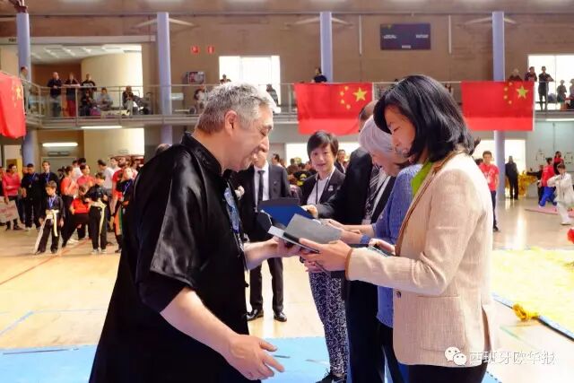 赠送纪念品 表演结束后,主办方为到场嘉宾赠送了武术大赛的纪念品。 伴随着中国太极音乐的缓缓响起,场馆内各国武术爱好者在太极大师的带领下,集体表演太极拳法,拉开了本届国际武术大赛的序幕。 据本次大赛组委会主席张建新先生介绍,与以往相比,这次比赛可以概括为"一专,两大,三多"。"一专"指大赛的高端专业。此次活动受中国武协授权,以中国最大的武术协会的身份保证了大赛的专业性。同时,主办方还邀请到专业武术评审团,保障大赛的专业、公平、公正。而"两大"则是说活动的场地大,规模大。上千平的比赛场地,可容纳数千选手观众观摩参赛。另外,此次国际武术大赛规模空前,囊括了传统武术,现代武术,少林拳,太极拳,推手,中国式摔跤,散打七大类比赛项目。"三多"是说支持单位多,参与人数多、国家多。本届大赛由巴塞罗那华星艺术团主办,获得了巴塞罗那总领馆,巴达洛纳市政府,亚洲之家的大力支持。吸引了来自中国、西班牙、法国、意大利、波兰等十余个国家和地区的500余名选手参赛。他们中有几岁的小朋友,有身体硬朗的老者,均为武术运动爱好者。比赛将持续两天,预祝所有参赛选手都能取得满意的成绩! 来源:欧华报 |