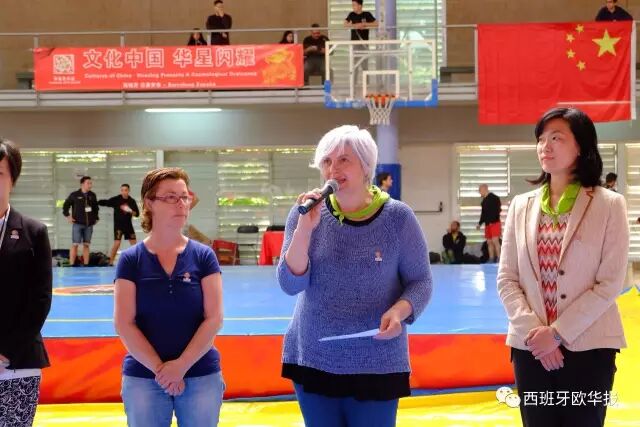 中国驻巴塞罗那总领馆唐凌云副总理事 唐凌云副总领事在开幕仪式上致辞。她说,武术历史悠久,是中国特有的传统体育项目,也是中华文化的重要象征之一。近代以来,传统武术运动逐步走出中国,受到世界各国人民的认可与喜爱。在中国侨团和侨胞的大力推动下,武术在西班牙的影响日益广泛,不少当地人开始习练武术,各类武术团体和学校应运而生。希望通过今天的比赛,中外武术爱好者能够切磋技艺、以武会友,进一步深切感受中华文化的博大精深。唐副总领事向大赛主办方巴塞罗那华星艺术团,以及给予活动大力支持的巴达洛纳市政府和亚洲之家(Casa Asia)表示感谢,并向长期以来致力于中国武术和中华文化推广的各界友人表示敬意。 巴达洛纳市市长多洛勒斯女士(Dolores Sabater) 多洛勒斯市长表示,很高兴看到该赛事再次在巴达洛纳市举办,此次活动恰逢该市一年一度的五月节,中国文化元素为节日增添了多元文化色彩。巴达洛纳市中国侨民群体数量众多,中国侨民为该市经济发展和文化多元化作出重要贡献,中国文化是该市文化的重要组成部分。此次活动是展示中华文化、增进双边文化交流的良好契机,希望该市市民能够在习练武术的同时,感受中华文化的魅力。致辞最后,多洛勒斯市长预祝武术比赛圆满成功。