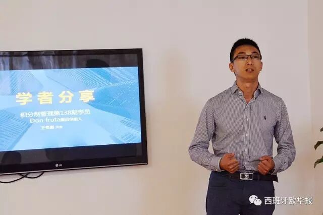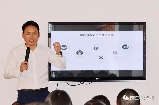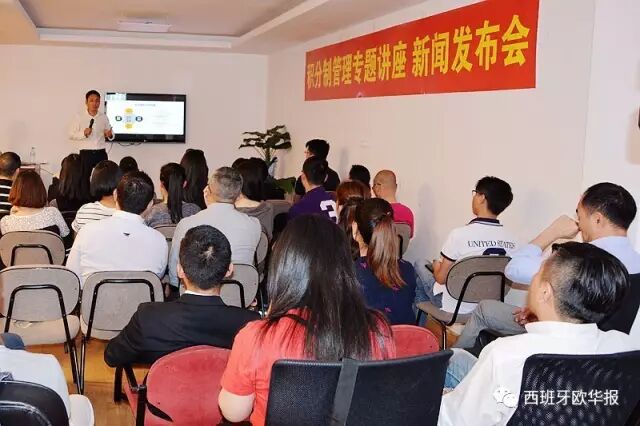 ![]() 现场问答 欧华报马德里消息:5月8日下午五点整,“积分制管理”助力旅西华商转型升级新闻发布会在Usera正信商务成功举办。A1广告公司总经理王杰先生、Don Fruta集团兼Deco Casa家纺创始人王显勇先生、旅西华商企业主及各华人媒体出席了新闻发布会。 王杰先生 活动伊始,王杰先生对现场各位华商企业家、各位嘉宾、各华文媒体表示热情的欢迎和诚挚的感谢。王杰先生首先为大家介绍了什么叫“积分制管理”?积分制管理就是用积分(奖分和扣分)对人的能力和综合表现进行全方位的量化考核,并用软件记录和永久性使用,其目的是用积分制充分调动人的积极性。众所周知,现在旅西华商大多都处在转型升级阶段,而转型升级就必须要提高我们的管理能力,积分制管理正是提高广大华商管理能力的最佳工具。 活动现场 王杰先生以他的体验,简明扼要的提炼出积分制管理的五个精髓并现场举例。其分别为:1、用积分制调动员工的积极性;2、用积分制增强制度的执行力;3、用积分制解决分配上的平均主义;4、用积分制留住人才;5、用积分制节省企业的管理成本。