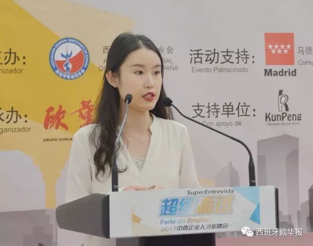 BOSS张剑毅立即表示:“加入我们,可以让你成为女神!”四位BOSS同时举牌“SI”。陈艾伦向三位BOSS表示感谢,毅然选择了国际美业集团张总。全场报以热烈的掌声。 4号应聘者王晶晶-崇尚创新的资深媒体人转战市场销售 王晶晶今年27岁,石家庄人。她的简历挺牛的,毕业于天津师范大学广播电视编导专业,在中国传媒大学进修过相关专业三年。曾经是中国中央电视台CCTV—10科教频道的出镜记者、编导。她的自我评价是性格开朗、为人诚恳、乐观向上,拥有积极向上的生活态度和广泛的兴趣爱好,具有良好的心理素质和吃苦耐劳精神,对事有自己的见解,并有较强的共事协作能力。四年的大学生涯,以及三年的工作经历让她的组织协调能力、管理能力、应变能力等大大提升。王晶晶的求职方向是:文化媒体类或国际贸易。 Boss团现场提问 BOSS洪伟荣问王晶晶:“为什么放弃在央视这么好的工作来西班牙?”王晶晶的回答是这样的:“因为干预太多,自己的创意无法实现。我不喜欢别人把我当作流水线上的工人,我的工作是编导,编导就是要有个人的思想和见解,要在我的作品中体现创意和个性,而原来的工作受到太多客观条件的局限,让我觉得很失望。所以,走出国门来到西班牙,想换一个环境。我今年27岁,还可以打拼一番事业。” BOSS吴伟军问:“想不想赚钱?有没有想过从事其他职业?”王晶晶答:“来西班牙后一直在学习语言,有点‘坐吃山空’的感觉。生活要自力,就需要工作挣钱。我很愿意尝试其他职业。” BOSS洪伟荣为王晶晶提供了待遇优厚的销售的职位,除了保底工资,完成销售额10万,可按毛利提成2%;如果完成30万,按毛利提成3%。 虽然这份工作中对王晶晶来说,是一个陌生的职位,充满了挑战,但是王晶晶还是欣然接受!我们祝愿这位崇尚创新的资深媒体人转战市场销售一样可以干得很出色! 5号应聘者张坤申(音译)-优秀IT男愿为华企做贡献 张坤申(音译),1992年出生在中国温州市,15岁时随父母来到西班牙,在这片土地上读完了初中、高中、大学。他毕业于马德里理工大学工业电子工程与自动化专业,还学习了自动化与机器人学。今年25岁的他,已经是一位卓越的工程师。他擅长软件开发、人工视觉、人工智能、机器人。他曾在软件平台开发西班牙铁路的连锁系统。他很诚实,他说,在他向这次招聘会递交简历后,两周前他刚找到一份新的工作,目前还在试用期。由于他专业的特殊性,一般都是跟着项目走的。 BOSS洪伟荣和BOSS张剑毅都举起“SI”的牌子,虽然他们公司招聘的岗位与这位理工男的专业不对口,但公司要发展,这样有实力又年轻的IT人才还是要储备的。于是,两位BOSS要求与张坤申私聊。张坤申表示,一直在西班牙公司工作,对华企不太了解,很想为需要他的华企做点贡献。 6号应聘者ISABEL王周-生物科学工程系毕业的华二代学霸 ISABEL王周毕业于英国爱丁堡大学生物科学工程专业,今年23岁的她是个在海外出生的华裔后代,中文能力差一点,她用流利的西班牙语和英语介绍了自己。她表示,参加“超级面试”是希望得到社会实践的机会,只要适合自己,她都愿意认真学习。 国际美业集团总经理张剑毅先生向她伸出了橄榄枝,欢迎ISABEL来他们公司实习,他提供的岗位是美业集团的连锁实体店。他希望ISABEL通过实习锻炼,日后可以用她的专业为美业集团增光添彩。ISABEL表示对美业集团很有兴趣,非常高兴能获得这个实习机会。 7号应聘者徐铭泽-熟悉国际酒店管理者转战新职场 徐铭泽,23岁,大学本科学的是国际酒店管理。曾在上海宏泉丽笙酒店实习,参与酒店商务会议及婚宴销售,也做过导游。2014年-2016年入职金浦投资控股集团有限公司,在金浦集团收购的西班牙马略卡(MALLORCA)五星酒店任总经理助理,熟悉酒店行业运营。目前离职,想在马德里地区找一份适合自己的工作。 由于BOSS团招聘的职位没有与之相匹配的,所以很遗憾,徐铭泽现场应聘失败。当然,并非徐铭泽不够优秀,凭借他的条件,完全可以在其他招聘单位中寻找适合自己的职场,相信他一定可以找到自己心仪的岗位。 8号应聘者陈惠霜(音译)-寻求更大发展空间的双语翻译 最后一位现场应聘者叫陈惠霜(音译),她是一位个子高挑的女生,来自塞维利亚,现场临时向组委会要求上台应聘。她毕业于广东外国语学院,具有外语和国际贸易双学位,目前在塞维利亚从事翻译工作,通晓英文、西班牙文和中文。除了翻译工作,她还是中文学校的一名教师。陈惠霜说,今年6月,她将结束在塞维利亚的工作,来马德里发展。她的求职方向是:翻译或销售。 西班牙青田同乡会代表BOSS徐淼坡先生觉得陈惠霜非常适合担任协会的秘书,与青田同乡会倪晔敏会长窃窃私语后,他毅然表示,可以为陈惠霜提供协会秘书的岗位。盛合贸易公司BOSS吴伟军也看中了这个人才,他为陈惠霜提供的岗位是欧盟市场的销售专员。 陈惠霜认真考虑了片刻,最后选择了BOSS徐淼坡先生,她可能觉得自己的擅长更适合去青田同乡会任秘书。 2017年“超级面试”真人秀专场在全场观众的热烈掌声中落幕,大家都为BOSS团如愿抢到人才和人才找到如意的企业而兴奋不已。 今年的“超级面试”真人秀专场得到西班牙马德里鲲鹏教育服务公司的大力支持。鲲鹏教育成立于2013 年2月,以优质的服务获得广大留学生的认可。四年来,公司不断发展壮大,现已形成集学校申请、西