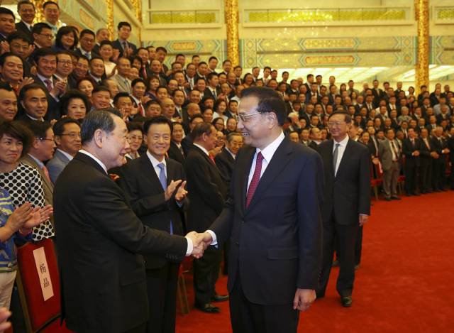 国务院侨办主任裘援平和侨商代表共同触摸水晶球 国务院侨办建立和开发了中国侨网和“侨宝”APP,为侨办与侨胞、归侨侨眷之间建立了综合性、全天候的无缝联系平台。