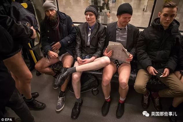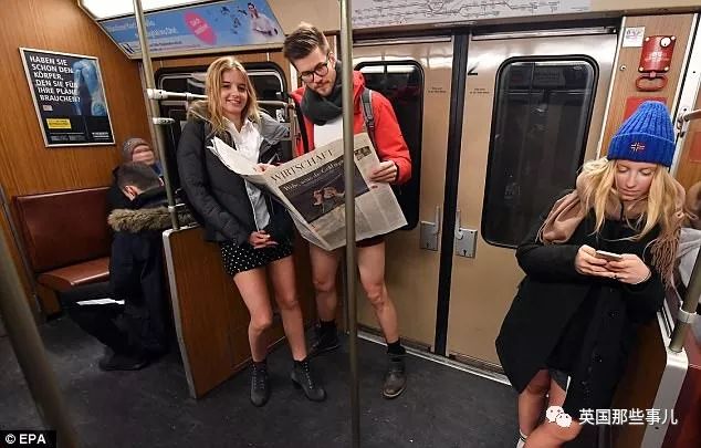 话说,歪果仁各种奇特的画风大家都已经见怪不怪…… 不过像今天,大家上身穿着正常衣服,下半身却穿个薄薄的小内裤, 酱紫的精分画面,想必还是不常见到。 倒不是歪果仁更抗冻……而是因为今天是世界地铁无裤日啊(No Pants Subway Rides), 在这一天,很多人都会脱掉外裤,只穿着各式各样的小内裤乘地铁。 先来感受一下这冰冷又性感的画面…… 伦敦地铁Tower Bride站,穿红色蕾丝小内裤玩儿劈叉的妹子。 Stratford站,紫色帽子紫色衣服+紫色马丁靴的姑娘,感觉屁股都冻红了呢-。- Liverpool Street 站, 美国纽约, 加拿大蒙特利尔, 捷克首都布拉格 德国慕尼黑 柏林 耶路撒冷 要知道,伦敦今天大概4摄氏度,北美更低,零下20摄氏多度。 这种天寒地冻的天气穿只穿内裤,也是够拼的-。- 这种奇葩的做法还要追溯到2002年…… 当时,一个名叫Improv Everywhere的喜剧表演团体突发奇想,在纽约号召大家不穿裤子乘地铁。 本意是为了以奇葩的行为博大家一笑,放松一下心情, 没想到竟然颇受欢迎,所以从那以后,他们每年都要这么光屁股秀一场-。- 还有不少热心路人也积极参与了进来……