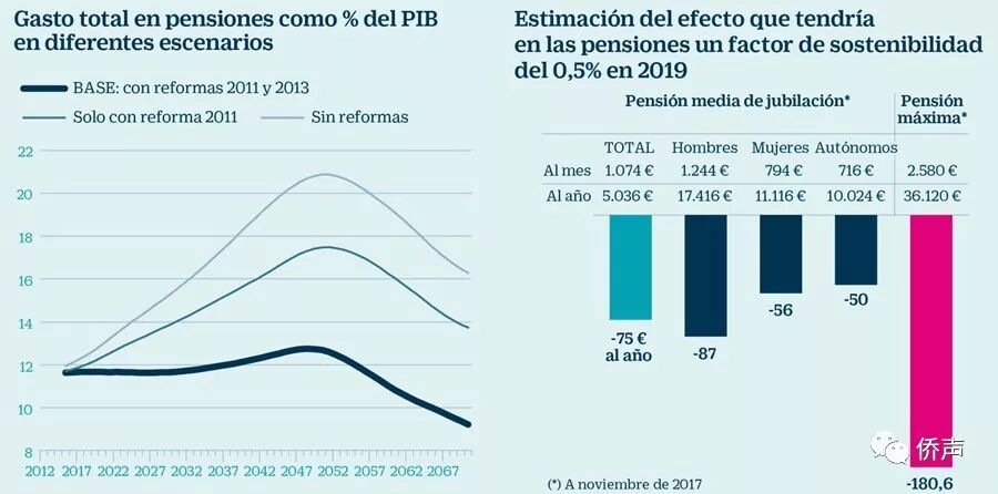 【侨声报】1月31日消息,还有1年时间!到2019年1月1日之后,西班牙退休人士的养老金数额将低于现行标准!2019年之后的养老金改革将小幅降低退休人士的领取的数额。 尽管2013年就出台了养老金改革的一些文件,但执行起来遇到的问题错综复杂,最后决定不能适用于2019年之前;不过养老金改革的既定目标就是在不远的未来削减养老金数额,以适应更长久的西班牙人预期寿命,此外,西班牙养老金制度屡屡被诟病;这已经是人尽皆知的事。 但这样的方案能否执行?执行力充分吗?能持续多久?都是未知数!目前,西班牙政府仍旧在设计并不断纠正养老金改革执行方案的最终分配尺度;可以确定的是,依照2017年年底人均退休金1074欧元且以14个月发放的框架,在将来,将以每年75欧元递减。 每年75欧元,坦白来讲,并不多,但人们能否接受呢? 西班牙Willis Towers Watson养老金负责人Gregorio Gil de Rozas表示,预计2019年他所属机构的退休金福利发放将下降0,47%;不过,CCOO工会的公共政策和社会保障部负责人Carlos Bravo则认为,福利发放的下降力度至少在0,5%左右,最高徘徊在0,7%左右,唯一可以理解的是,养老金缺口巨大,老龄化严重,且西班牙人的预期寿命始终在延长。 西班牙精算师协会中的专业人士表示,预期寿命的延长当然影响养老金年限的累计,通过大致预算,可以得知,每十年将有5%左右的削减,这当然是预估,还不能成为完全的事实数据。 但可以确定的是,2019年之后,将执行2013年养老金改革的一部分,其中一个主要动因就是养老金支出的可持续性,降低养老金数额的支出则是其主要内容租成。 |