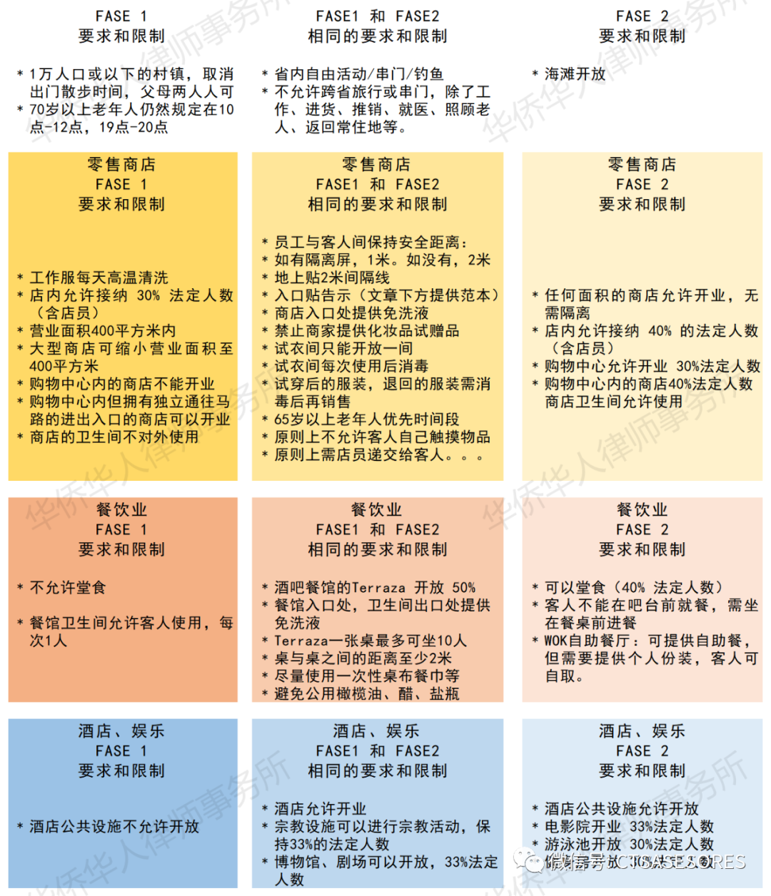 进入或停留在FASE1级别的地区: 马德里自治区、瓦伦西亚自治区、Castilla y Leon 自治区、Toledo省、Ciudad Real省、Albacete省、Granada省、Malaga省。加泰罗尼亚自治区中大部分地区停留在Fase1。 进入到FASE2级别的地区: 其余的所有西班牙地区。 备注:在Fase1阶段就允许全家人一起散步。另外,也允许集体运动了。 备注:在Fase2阶段,学校可以开学,但这不代表复课,而是学校可以安排如补习或导师、班主任指导等。 备注:至今还有很多人问,一辆车可以坐几人。答:同一住家的,一辆车上不限人数,可以不戴口罩。不是同一住家的,每排两人,戴口罩。 备注:允许省内自由活动,不允许跨省。注意:比如Alicante和Valencia都属于Valencia自治区,却是两个省,所以无论在Fase1还是Fase2,都不能跨省串门或旅游。 下面提供在零售店入口处需要出示的入店告示: