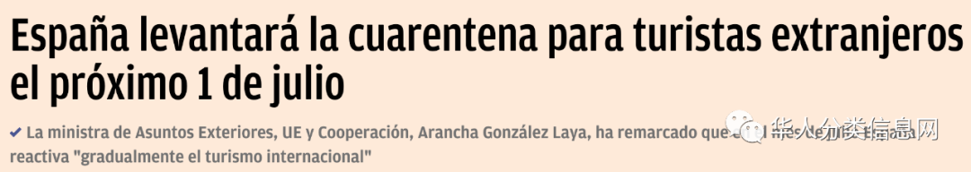 自5月15日以来,政府宣布对进入西班牙的旅客实行为期14天的隔离观察,但这样的措施对旅游业造成了不适。