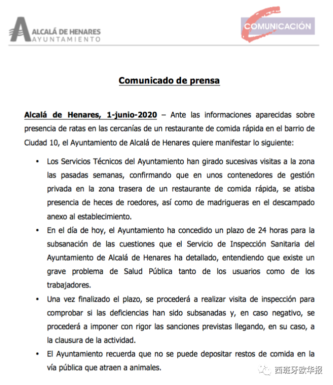 对此,据《20分钟》报道,在过去几周内,市政府有关部门连续到上述有关地区进行核查,经确认后,市政府了解到该快餐店确实存在,不论对于消费者或该餐厅员工而言,都十分严重的公共卫生为题。因此,已向该餐厅发出通告,令其24小时之内彻底清除他们“后院”老鼠和其他啮齿类动物的粪便。