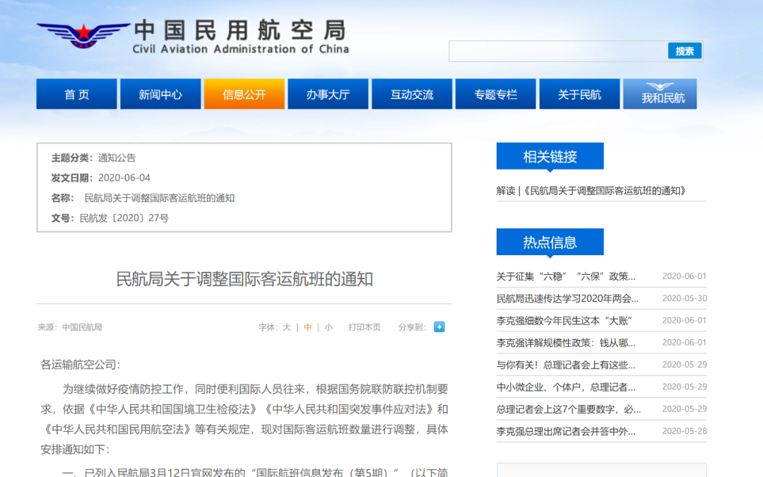 详情链接: http://www.caac.gov.cn/XXGK/XXGK/TZTG/202006/t20200604_202928.html 解读: http://www.caac.gov.cn/XXGK/XXGK/ZCFBJD/202006/t20200604_202948.html |