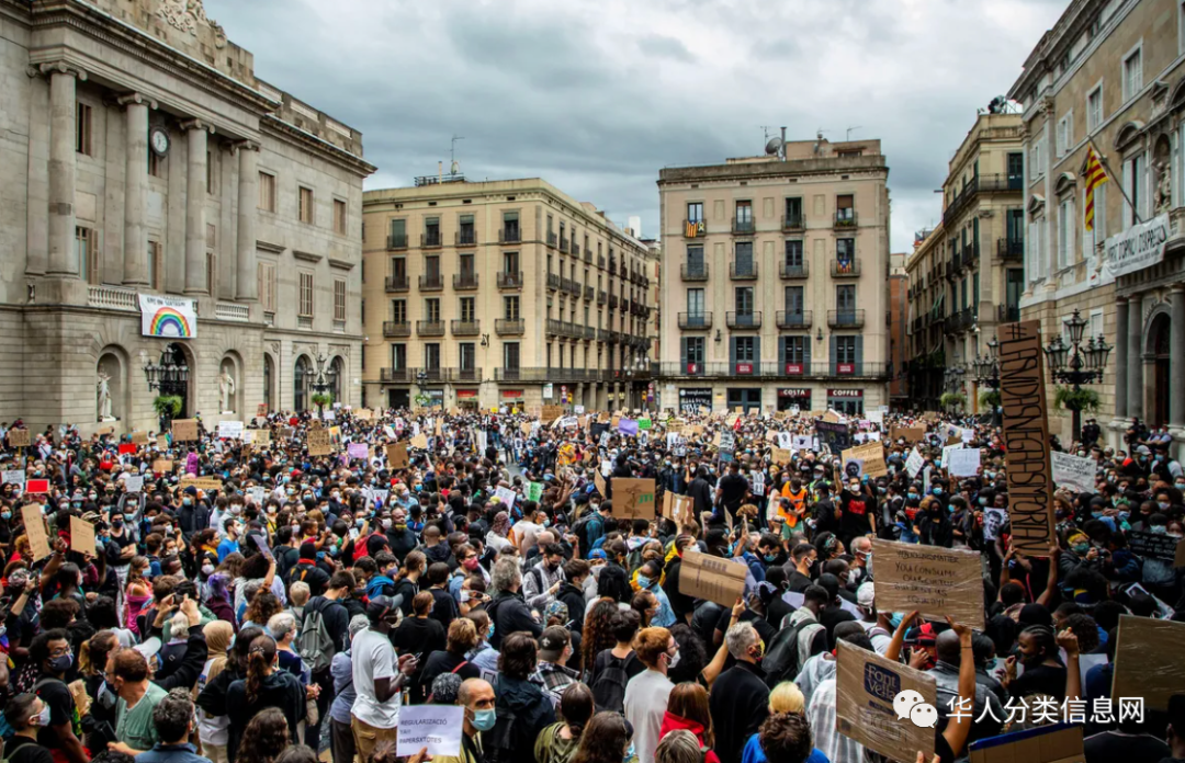 6月7日最新消息,美国黑人乔治‧佛洛伊德(George Floyd)被警员制服期间死亡而触发的反种族主义及警察暴力的示威进入第12日,美国各地仍然有大型和平游行**,其中在首都华盛顿,有数以万计的人参与游行,保安人员阻止任何人试图走向白宫。纽约、芝加哥、旧金山等地也有群众示威。这场有关种族的示威浪潮蔓延至欧洲英国、法国、德国、西班牙和澳大利亚。 据西班牙媒体20分钟报6月7日消息,上午11点左右,Girona地区的Salt市聚集了超过300名非洲移民,抗议种族歧视。