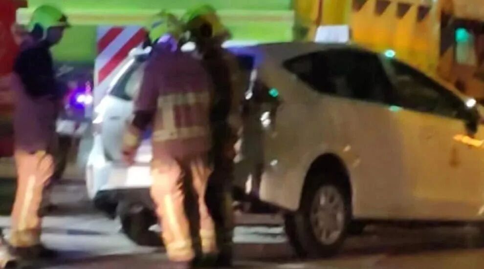 昨天晚上, 一辆出租车在Zaragoza的Camino de las Torres和Miguel Servet街道交汇处从后面撞上了一辆垃圾车。出租车司机和一名乘客受伤。