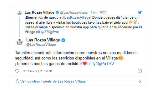 马德里Las Rozas打折村已开业!Inditex将关闭上千家店!! 西班牙20分钟报消息,6月8日星期一,马德里las Rozas Village打折村的商店和餐馆都在根据卫生部的建议实施了新的防疫措施后重新开放。 商店的开放时间为星期一至星期五12:00至20:00,星期六至星期日12:00至21:00。一些餐厅的露台在11:00开始营业。