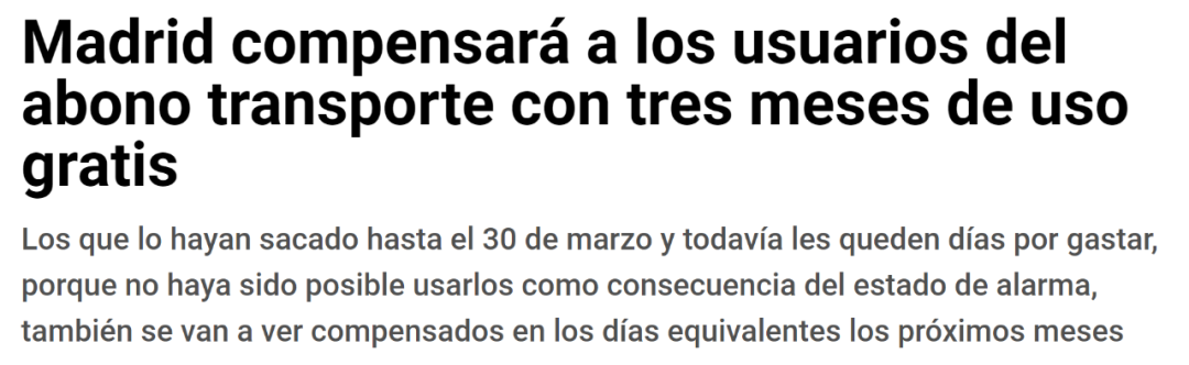 根据西媒表示,因为疫情而导致的一系列状况,所有在2020年购买地铁年度套票的马德里地铁乘客都可以将其使用期限延长至2021年3月31日,这意味着将有三个月的**期,这弥补了疫情期间他们无法使用它的事实。 而对于月票用户,也有相应优惠。那些截止3月30日充值的由于处于警戒状态而无法使用套票的用户将在未来几个月中得到同等天数的补偿。 该消息是由马德里大区副主席Ignacio Aguado在交通部长ÁngelGarrido的陪同下访问公共运输卡的管理办公室之一后宣布的。