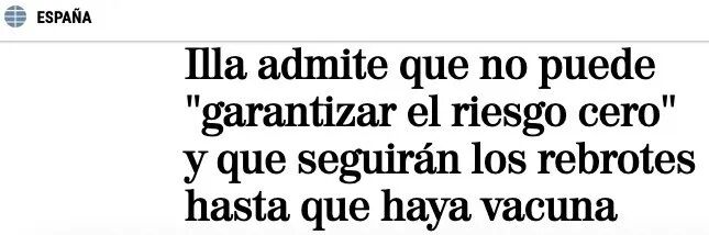 卫生部长Salvador Illa在国会上表示, 他和任何人都不能保证新冠病毒的零风险, 而Covid-19可能会再次重创西班牙, 像3月份发生的那样失去控制。 让人值得放心的是, 现在我们可以及时地发现疫情, 快速有效地采取控制措施, 避免病毒传播。零风险在任何地方都不存在, 西班牙不同地区爆发的疫情将继续出现, 直到研究出疫苗为止, 我们只需要寻找正确的方式来控制它。 Salvador Illa保证, 对于目前的疫情反弹情况, 还不足以让西班牙退回到紧急状态, 降级过程一直是有效的。因此, 政府将在未来几周内批准一项准备计划, 以应对可能发生的第二次, 甚至病毒传染力更强的Covid-19浪潮。 来源:华人资讯传媒 |