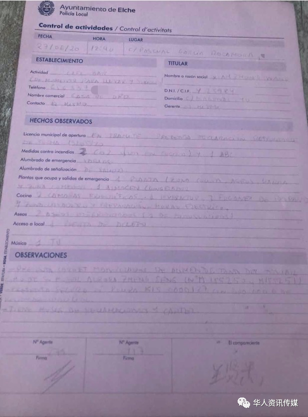 6月28号最新报道, 一名热心读者向小编提供信息称, 昨天早上12:40左右, 位于Alicante省Elche市的X屋小吃店**方突击检查。 据悉, 这家小吃店于2002年开业, 由于近期以来受疫情影响, 扩大了营业范围并将外卖广告投放到Crevillente仓库区, 但是不到一个星期就被人多次举报, 称其无照经营。 随后, X屋小吃店老板娘也联系了本平台讲述了事发原委。小吃店一直做老外餐, 因受疫情影响造成经营困难, 同时也为华人同胞们在疫情期间提供饮食方面的便利, 才开始增设外卖服务。但是不久就**察上门检查, 称有人举报其无照经营。在经过一系列检查后, 证实该店内卫生条件合格, 证据齐全, 老板娘还提供了警方检查的文件。由于警方恰好赶在餐点到来, 还给小吃店当天的工作造成了影响, 导致送餐时间延误。 据老板娘称, 她和前来检查的一名警察刚好认识, 警察还向她透露是接到了其他华人同胞的多次举报。 疫情特殊时期, 尤其是华人店面经营不易。无论是否为同胞所举报, 出于何种原因, 同是身处异国他乡的中国人, 希望大家能够团结一致, 和睦相处, 共度难关。