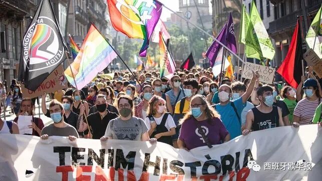 游行的口号是“Tenemos historia, tenemos futuro. Unimos los colores de todas las lucha”。本次游行不只是为LGBTI群体的权利发声,更强调与女权主义者,阶级,反种族主义者,或是那些为体面住房之权而抗争的群体联合起来的重要性。因此,诸如“Las Kellys”及Plataformas de Afectados por la Hipoteca (PAH)之类的团体也参加了这场游行。其中,Las Kellys涉及的是那些在酒店进行清洁的人,他们往往要在有风险的环境条件下工作。 Sin Vergüenza协会的发言人阿尔弗雷多·门多萨就这场游行表示:“任何团体都不会落单。” 据报道,游行在Universidad广场开始,在Sant Jaume广场结束,并在那里宣读了游行宣言。 门多萨解释说,许多LGBTI人隔离生活在“不安全的环境”中。面对这种情况,他们借此行动呼吁在住房、就业、公共服务、基本收入、环境保护、反种族主义等领域采取“勇敢”的社会政策。 来源:欧华报 |