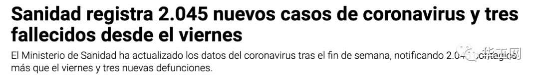 根据西班牙卫生部7月13日最新通报,西班牙今日新增了2045例感染,累计确诊 255.953例,新增3例死亡,累计死亡28.406例。据悉,今天新增的2045例是把周末的也算进来了,但是三天2045例,平均每天681例,也不低了。