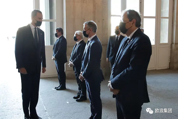 图:国王(左)于本周四在马德里王宫主持了新冠逝者致悼仪式,曾与托拉(右)会面。 扎眼的是,托拉在信里把加泰罗尼亚称为“国家”。这是闹分裂的加泰罗尼亚独立主义者的惯常和刻意的做法,他们在官方文书里都是一概把加泰罗尼亚称为国家而非西班牙自治区。