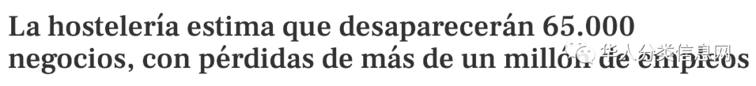 据西班牙europapress网7月21日消息,西班牙餐饮业估计今年全年将消失大约65,000个酒吧,咖啡馆和餐馆,并预测会将减少90万至110万个直接和间接的就业机会。