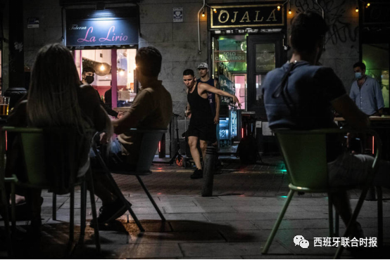 Alonso Martinez街区一家夜酒吧的老板则向记者抱怨:“我不明白为什么夜酒吧必须1点30分关门,难道是因为病毒在晚上1点30分才上班出门感染人类吗?”同时他也解释道:“我不是不接受政府限制,但是这些限制的意义何在?难道说1点30分之前酒吧以同样的桌子、同样的客流量营业就没有风险?难道白天人满为患的公园就没有风险?政府不要为了限制而去限制,应该想一些切实有效的办法,避免我们遭受第二次病毒袭击。”Malasaña街区一位酒吧业主则向记者介绍了他们独特的防疫手段“我们专门派了一个人,在Terraza上面盯住每桌客人,喝东西时才允许摘下口罩。也禁止客人破坏安全距离互相窜桌。”旁边一桌的女客人则打趣调笑道:“现在单身狗日子太难熬了!连窜桌勾搭都不允许!!”