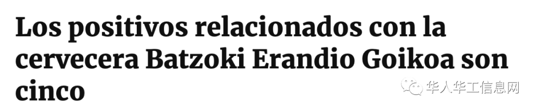 巴斯克大区的Erandio小镇的一家啤酒厂确诊5名感染病例。 来源:华工网 |