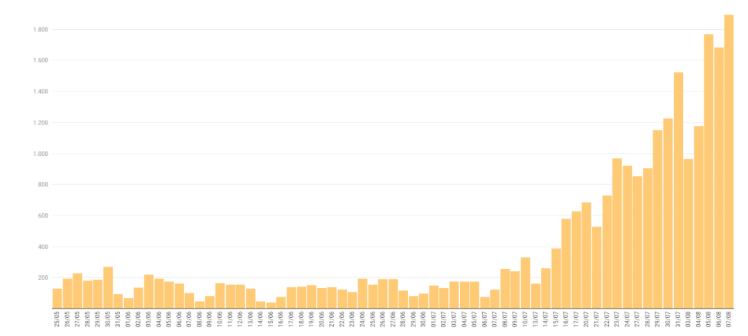 全西累计死亡28503例,研究人员已经在马德里多达28个地区的废水内检测到新冠病毒样本。 主要的新增病例还是来自加泰罗尼亚、马德里、阿拉贡和巴斯克地区。巴斯加泰罗尼亚和马德里地区的新增病例数飙升已经是众说周知,据西班牙卫生部图表显示,阿拉贡地区的确诊人数因为“技术问题”没有更新。而巴斯克地区的疫情爆发令人非常意外,今日新增403例,较昨日上涨了27%,已经达到了今年三四月份的水平。