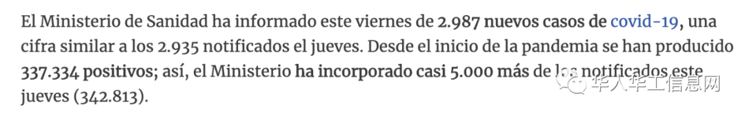 虽然卫生部官方通报新增2987例,但西班牙媒体提到,对比昨天的人数,实际感染将近5000人。在今天的人数中,马德里占了四分之一,新增731例新病例;阿拉贡地区有481例新感染,巴斯克地区有480例,全部占感染总数的一半以上,马德里八月份感染率涨了10倍。 马德里卫生部主任Enrique Ruiz Escudero呼吁民众要冷静,因为目前的医疗体系还有足够的能力来应对现在的爆发。目前的入院患者趁势稳定,70%以上患者都是无症状,此外重症监护室一半以上患者不需要呼吸机。 来源:华工网 |