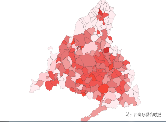 根据西班牙卫生部周三发布的新一期各地区新增疫情感染数据。过去的14天内,西班牙全国感染数据在每10万人感染90人,几乎是两周前的四倍。马德里大区目前感染率已达每10万人感染112人,相较14天前翻了三倍,居西班牙全国之首。 马德里市内疫情感染率则更高,达到每10万人感染123人。整个马德里大区疫情统计图来看,呈现“一片红”的现象。城区内,华人聚集的Usera地区,感染数据达到每10万人感染326人。相较于14天前的数据翻了两倍。除了Usera地区外,主城区内的Villaverde和Carabanchel地区,感染率同样超过200,分别达到每十万人感染226和213人。紧随以上三个南部城区之后的,分别是Puente Vallecas、市中心、Latina和Ciudad Lineal城区,这些地方的10万人感染率也已超过市区平均水平的120人。 卫星城来看,此前疫情最为严重的Mostoles和Torrejon Ardoz城区,目前仍然在各卫星城中居靠前,感染数据达到同样的每10万人感染209人。紧随其后的感染情况较为严重的卫星城分别是Majadahonda(每10万人感染157)、Fuenlabrada(每10万人感染157)、Alcobendas(每10万人感染147)和S.S. de los Reyes(每10万人感染140)。