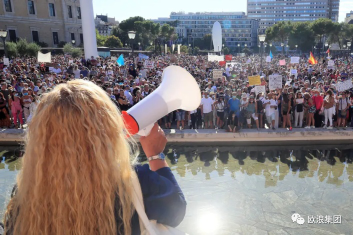 欧浪新闻8月17日(马德里 柳传毅编译) La Razon日报报道,昨天周日下午六点,3000多马德里民众聚集在马德里中心哥伦布广场,抗议西班牙政府强制执行的戴口罩等管控措施,抗议者认为戴口罩不仅限制了人的基本自由,而且是“荒唐、无用”的措施,示威者并且认为新冠疫情是捏造的“谎言”和由“媒体操纵出来”的假危机,所谓的病毒“不存在”,不过是一般的流感,2015年一般流感死亡人数比现在还多。引人侧目的是,参加示威者不戴口罩和没有保证安全距离,完全违反了当前西班牙的疫情控制法规,对此严重违规活动,西班牙派驻马德里的政府代表表示要严厉处罚。 这个抗议行动由'#StopConfinamiento'(停止隔离)社交圈几天前通过网络串联发动,西班牙著名歌星Miguel Bosé通过推特接连发了多条朋友圈支持这个行动,鼓动人们去参加抗议。此后,该歌星的煽动招来潮水般狠批。自下午六点起,人们开始在哥伦布工厂聚集,维持秩序的警方在入口位置设置控制,要人们戴口罩出席示威。