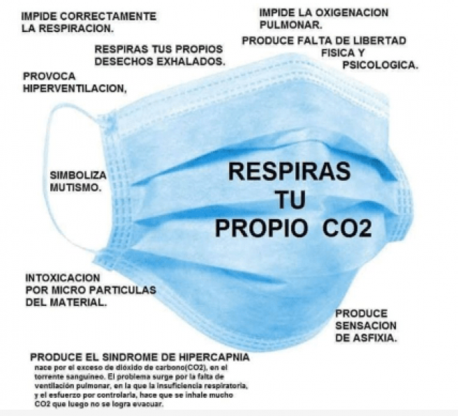 他们在“反病毒”抗议中反复强调的论点是:大流行是有权势者剥夺公民自由并控制其生活的借口。 “反口罩” 这个团体也反对使用口罩,他们认为人们不必使用口罩以保护自己不受任何伤害。 “我们不害怕,我们就是抵抗力量”,这是本周日在科隆广场发出的一些口号。 对于口罩,反对者认为这些保护措施会导致过度换气,使佩戴者呼吸自己“呼出的废物”,并由于吸入微粒而导致中毒。不过他们这种说辞已经被医生和科学家们一一否定。 口罩的照片伴随着使用这些口罩所产生的“恶果”,是该团体在社交网络上传播其信息的最常用的手法之一。