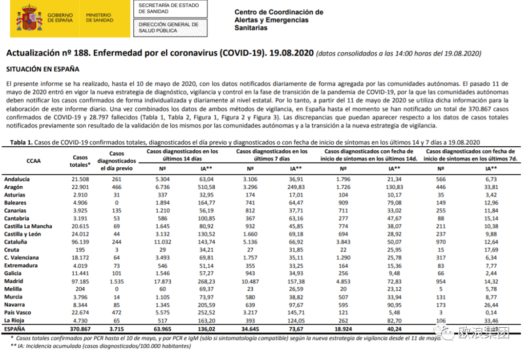 图:西班牙第二大媒体《世界报》今日17点8分报道说:西班牙日增6671例,24小时新纪录3715例,累计升至370867例。 *卫生部报表标注过去24小时仅新增3715例,因为卫生部只把在24小时内接受检测和得出结果的人视为日增,而在其他日子接受检测,并因工作量问题而拖至近24小时才有结果的病例不视为日增,这些新病例统计在累计里,但不出现在24小时新增数字里。这是西班牙卫生部对日增的定义和报告日增数据的方法。我们作出附加解释是为了更全面理解西班牙的情况和看懂西班牙卫生部的数据。