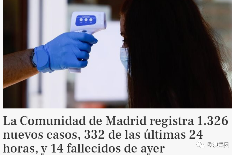 马德里的日增疫情实际高于卫生部采集到的数据,这些可从马德里卫生部官网可看到,例如欧洲新闻社今日报道(图)说,马德里报告新增1326例,其中332例在24小时内测出。 今日,马德里自治区政府司法署长Enrique López呼吁马德里居民“避免无必要的社交互动”,马德里自治区公共卫生副署长上周呼吁马德里人尽量不要出门和避免无必要的旅行,马德里卫生署长则在几天前还认为马德里疫情绝对处在“可维持性情况”。马德里自治区政府表示将控制疫情,但否定会封城。 第二严重的加泰罗尼亚也继续非常严重,如西班牙《世界报》和《国家报》等媒体的报道所言,加泰罗尼亚近一周来都日增千例以上。西班牙卫生部图表显示的24小时要少的多,因在其他日子测出的病例未算进日增里。