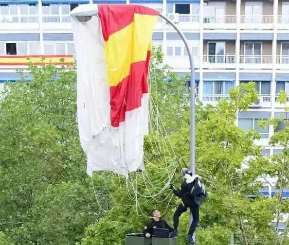 2020年10月12日,西班牙迎来了一年一度的国庆节。由国王和王后在马德里皇宫举行的庆祝活动,无数民众在这里欢呼喝彩。从活动开始前一个多小时,就有成群结队的人聚集在皇宫周围,有的还拿着西班牙国旗。 然而,对于西班牙来说,不出点什么意外的国庆好像就不是一个完整的国庆。大家还记得去年那个挂电线杆上,一跳成名的伞兵吗? 与往年一样,陆军特技飞行队的7架飞机原计划会在马德里的天空中绘制西班牙国旗,向那些因公殉职的军人致敬。而一场技术故障,让鹰式巡逻机队的一架飞机无法发射红色拉彩烟,导致天空中西班牙国旗的绘制失败。真不知道是不是因为西班牙一直以来,在疫情中的失利,已经让这些因公殉职的人都死不瞑目了... 国防部对此回应称,这是一项技术故障,将进行审查。鹰式巡逻机已经有30多年的历史,将在未来几个月内进行更换。