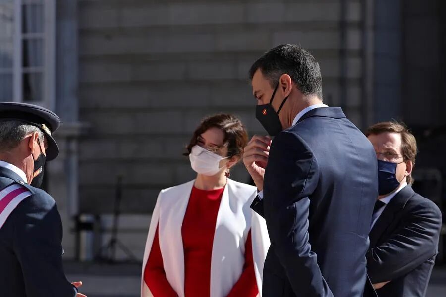 ![]() 西班牙首相Pedro Sánchez和马德里地区主席Isabel Díaz Ayuso在宣布进入警报状态后,周一在皇宫的Armería广场碰面。不过,他们冷冷地对彼此打了个招呼,便一起等待国王和王后的到来。 当Pedro Sánchez来到正在举行国庆纪念活动的广场,他把手放在胸前向Isabel Díaz Ayuso致意,这是疫情期间为避免身体接触而流行的手势。随后,Pedro Sánchez, Isabel Díaz Ayuso, 国防部长Margarita Robles、参谋长Miguel Ángel Villarroya和马德里市长José Luis Martínez-Almeida分别聊了几分钟。 尽管在国王到来之前,五个人一起待了一段时间,但是Pedro Sánchez和Isabel Díaz Ayuso并没有直接讲话。这不知道是谁在生谁的气...而明天,马德里地区将再次向中央政府提出解除紧急状态的要求。 来源:华人资讯传媒 |