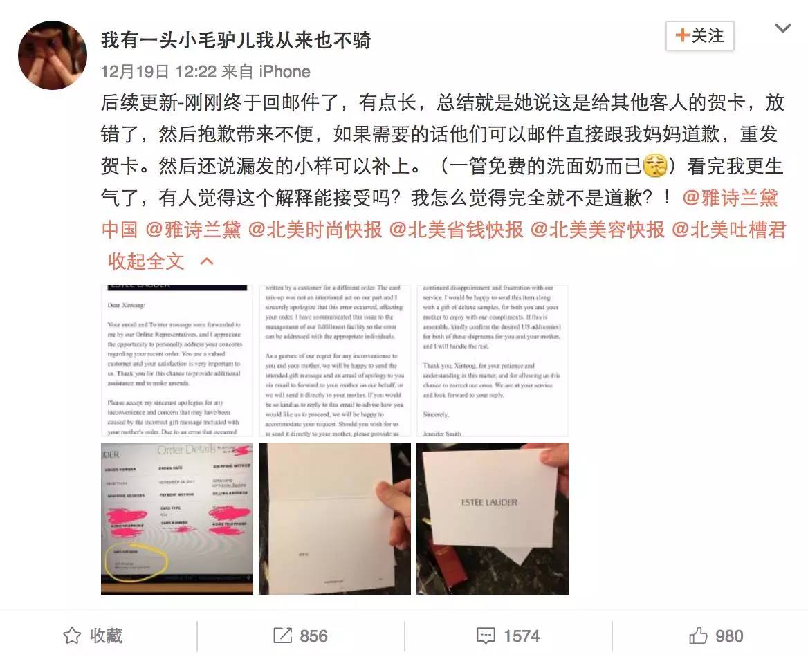 12月19日,中国留学生在微博上爆料,她在美国化妆品品牌雅诗兰黛的官网给妈妈买了一件眼霜作为礼物,希望在卡片写上“love you mom”。结果,收到的卡片中,却出现了“FCK U”的侮辱性字眼。 留学生买雅诗兰黛疑遭种族歧视 这位留学生表示自己是雅诗兰黛的老顾客,每年回国都会给妈妈带雅诗兰黛产品作为礼物。由于黑五之后她一直在其他州,一直到昨天才看到自己的这个包裹。开始她还以为是自己搞错了,还特意上网看订单,确认自己当时的信息确实是清清楚楚地写了“love you mom”。不知为何,收到的卡片却成了“FCK U”。 一开始她以为这只是个无聊的恶作剧,但是经过朋友提醒后发现,可能是雅诗兰黛看到买家名字是亚洲人后的种族歧视。 留学生在微博上表示:“难以置信,这种高端牌子怎么员工素质这么差?!” 经过这件事情后,她表示对雅诗兰黛的信任已经彻底崩塌了。 这位留学生向雅诗兰黛官网进行投诉,而她收到的官方回复却仅提出了这三点: 1. 卡片上的信息是另一位顾客的,真的真的不是雅诗兰黛故意的。 2. 可以补发卡片并向该留学生母亲发送道歉邮件。 3. 补发发货时遗漏的免费洗面奶。 留学生在收到邮件后彻底愤怒了:“有人觉得这个解释能接受吗?我怎么觉得完全就不是道歉?!” 而微博上也炸锅了,网友们纷纷表示这样的道歉简直不可理喻! 留学生也在微博上表示无法接受这样的道歉。 网友们也纷纷表示这个理由太过敷衍,有网友表示:这种牌子怎么不上天啊! 留学生表示:有谁会在贺卡上留这样的言呢?太歧视智商了。随后表示,将准备着手联系律师准备维权。 目前雅诗兰黛官方还没有回应此事。 这样的歧视与侮辱仍无处不在! 雅诗兰黛不是第一个在涉嫌种族歧视惹上问题的美国公司。 据报道,彩妆品牌Tarte涉嫌歧视华人。其在Ins发了一条笑话,用了“ching chong”这个词。随着事件发酵,Tarte不得不删除相关信息并锁住评论发布道歉,并将锅甩给了实习生…… 同样在2015年,快时尚服装集团Zara美国分公司Zara USA Inc被其前员工提起一项4000万美元的诉讼索偿,其被指控种族歧视、性取向歧视以及对待不同国籍的员工有薪酬上的差别待遇,更在公司范围内营造充满敌意的工作环境。 如果再细究,国际知名品牌多芬、妮维雅等也曾被指种族歧视宣传。 甚至在加拿大,也有类似事件! 早在2016年10月,大多伦多地区的游戏开发商Big-O-Tree Games就已经开始开发一个充满种族歧视的游戏:《肮脏的中国餐馆》(Dirty Chinese Restaurant),游戏恶意映射华人开餐馆一些无证据的流言,包括游戏角色非法移民,伪造护照,勾结黑帮等等。 整部游戏是充满对华人的种族歧视,游戏已经发布,惹怒了所以的海外华人,网友们都愤怒的表示,这种行为简直无可宽恕! 此类例子层出不穷,面对如此恶毒的种族歧视,面对不尊重和不公平的待遇,我们不应该默不作声,应当努力去维护自己的权益。 |