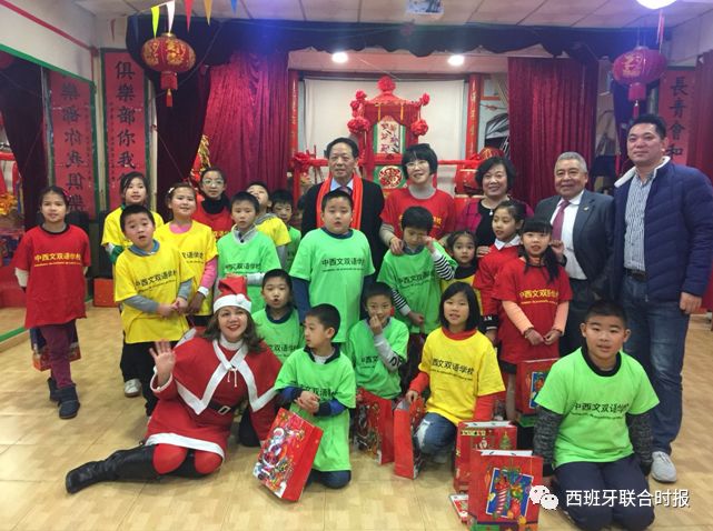临近圣诞,在西班牙马德里的大街小巷都张灯结彩,洋溢着浓厚的圣诞气氛。为了让西班牙马德里的移民家庭的孩子快乐地过一个圣诞节,12月23日下午,由USERA侨界联盟和厄瓜多尔联盟在USERA长青俱乐部举办了“贺圣诞——中外孩子互赠新年礼物”的活动,中西文双语学校USERA飞翔育才分校和西班牙马德里爱华中文学校积极参加本次活动。本次活动由Usera侨界联盟出资筹办,为孩子们准备了丰富的圣诞礼物。 150多个来自中国、西班牙、厄瓜多尔、玻利维亚、秘鲁、墨西哥和多米尼亚的小朋友齐聚一堂,在这个多国移民孩子大联欢的活动里,来自USERA飞翔育才学校和西班牙马德里爱华中文学校的华人孩子们主动将手里的圣诞礼物赠送给了其他国家的小朋友,收到礼物的外国小朋友显得十分开心,笑的非常灿烂,活动气氛在小朋友们的欢声笑语里显得活泼又温馨。