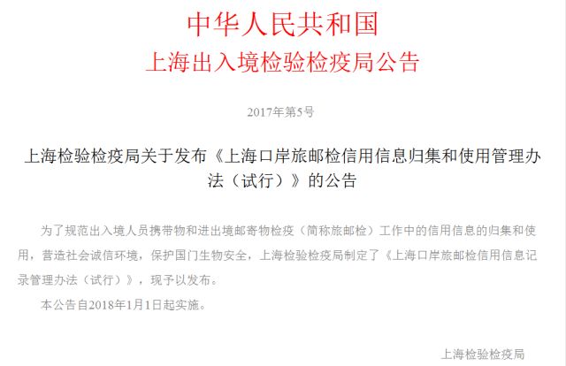 中国人向来讲究出远门归家的时候带些“伴手礼”送给亲朋好友。尤其是在国外的华人,逢年过节回个家免不了要帮家里带些“计划外”的礼物,吃喝穿戴的东西太多实在很无奈,只能跟自己一起打包送回国。这其中,可能就有一些中国海关禁止携带入境的物品。一些有经验的小伙伴们,可能稍微做一点手脚,耍一些小聪明,也有可能蒙混“过关”。即使被发现了,大不了也就是没收掉呗 ~不过,今天可要慎重的提醒各位:1月1日起,再抱着侥幸心理,携带违禁物品“闯关”,可是会给自己惹来大麻烦的! 2017年12月28日,中国上海国检局已经率先发出通知: “自2018年1月1日起,故意瞒报谎报、伪装藏匿禁止进境物,被依法查获者; 一年内两次以上携带、邮寄禁止进境物,被依法查获者等,将受上海出入境检验检疫部门按规处罚,并提报上海市公共信用信息服务平台。” 这就意味着携带、邮寄违规物品入关者,一旦被发现,就直接被列为:失信人士!从此被加入官方“黑名单”1年!一旦被纳入征信系统“黑名单”,在国内参与积分落户、住房贷款、车牌拍卖、政府项目招投标等,将在不同程度受到影响。 严重失信者,黑名单3年,并根据相关法律法规追究刑事责任,还可能会被限制出境! 所以这五种影响诚信记录的行为千万要不得: