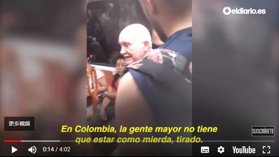 视频中,一名西班牙老人正在问一个拉美女子为什么不让座,“在哥伦比亚,老年人不会有这样糟糕的待遇,你们滚(En Colombia, la gente mayor no tiene que estar como mierda, tirao”。“你去意大利,去加拿大,去芬兰,去丹麦,去美国……你有上千个国家可以去。看看他们会怎么对你(Vete a Italia, vete a Canadá, vete a Finlandia, vete a Dinamarca,vete a Estados Unidos... Tienes mil países por allá. Vete a ver cómo te tratan)。”